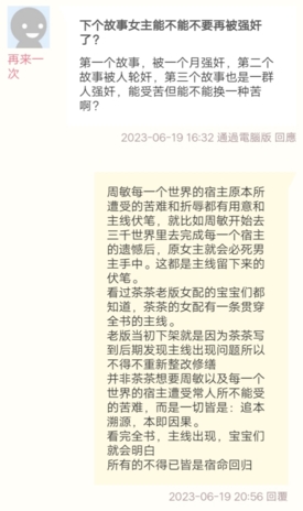 周敏每一个世界的宿主原本所遭受的苦难和折辱都有用意和主线伏笔,就比如周敏开始去三千世界里去完成每一个宿主的遗憾后原女主就会必死男主手中。这都是主线留下来的伏笔。