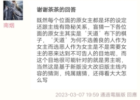 既然每个位面的原女主都是坏的设定还跟主线有隐秘关系,盲猜一下各位面的原女主其实是‘天道’布下的棋子。‘天道’为何不选善良的人作为女主而选恶人作为女主是不是需要女主的恶来达到不可告人的目地呢,而这个目地很可能针对的就是男主呢,当然这是基于新版没大改旧版主线内容的猜测,纯属瞎猜 还得看大大怎么写