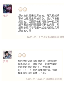 原女主就是来克男主的,每次都能搞事成功让男主不能顺心,虽然下场都挺惨的,后面敏敏和阿墨在一起后希望不要变成阿墨圈养保护的病花,希望敏敏能带着阿墨一起走南闯北实现原主的心愿