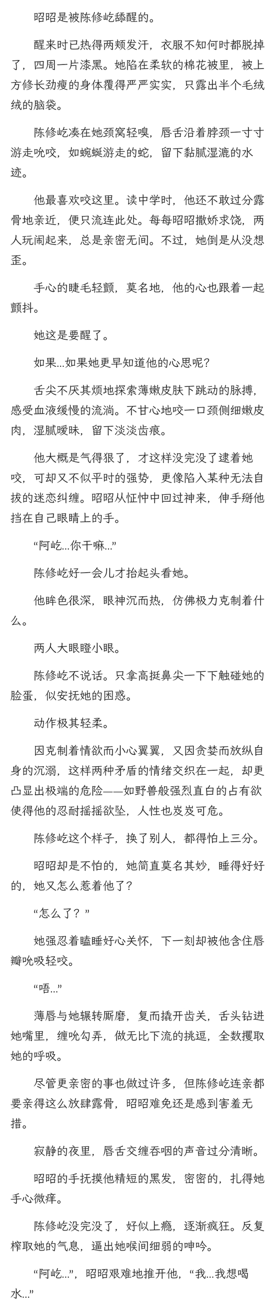 昭昭这才回过神,腥咸味道令她张嘴要吐,陈修屹掐着她腮帮又往里送了一截,淡淡地哄她,“乖,别吐。张嘴,牙齿别磕着。”