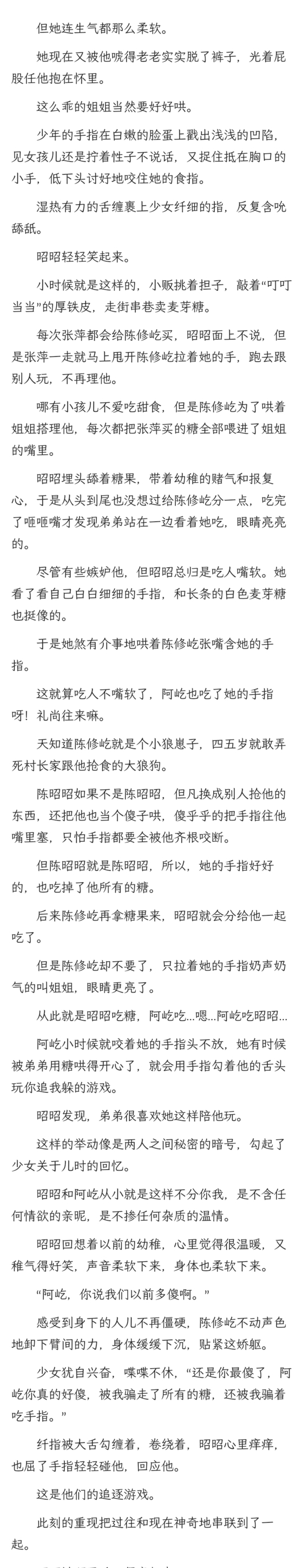 陈昭昭摆着姐姐的架子,说着训人的话,但句句都在对他撒娇。