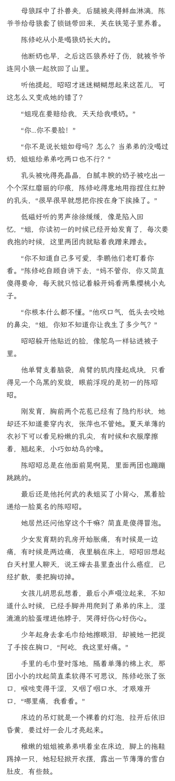 “嗯。”昭昭吸吸鼻子,声音小小的,很委屈。看着弟弟的手把小巧的乳尖捏得扁扁的,捏了半天却都不说开口说句话安慰她,心里莫名更委屈了,抬手抹眼泪,“阿屹,这样好痒。”