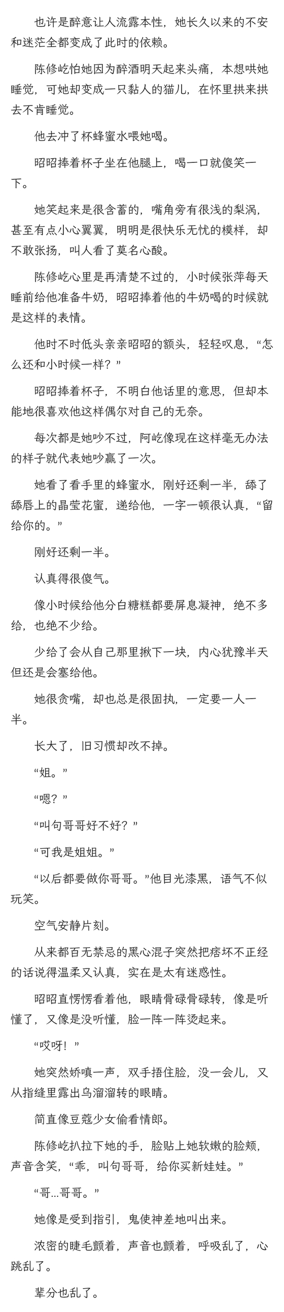 心也砰砰跳着,她觉得自己好像真的变成了一个被哥哥疼爱着的小妹妹。