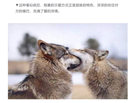 图片截取自新浪,文章标题是《亲亲怎么够~ 狼群示爱超狂野》这名字哈哈哈哈